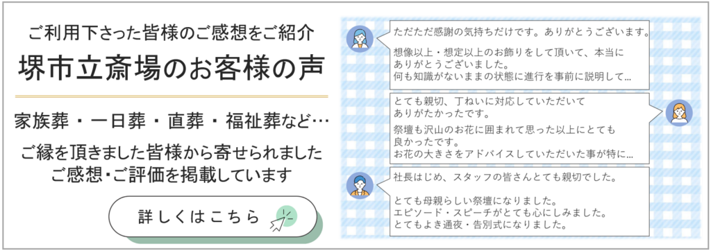 ▼当ホールのプランを使用した、堺市立斎場の葬儀事例・お客様の声