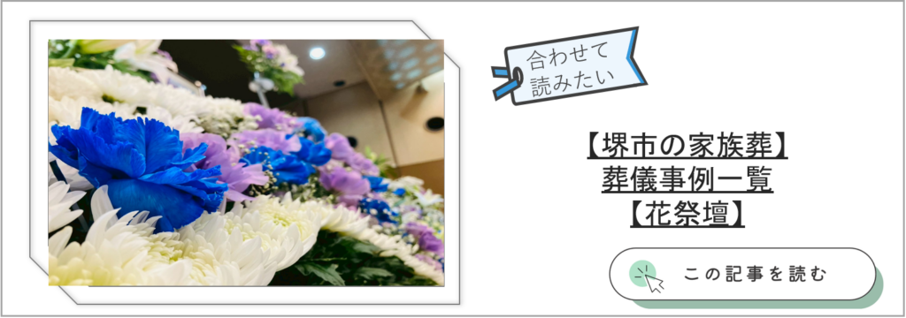 当ホールで行われた葬儀事例の花祭壇を、画像リンクよりどうぞご覧ください。