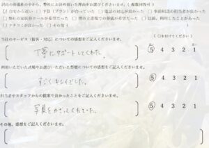 Q:当社のサービス(接客・対応)についての感想をご記入くださいませ。