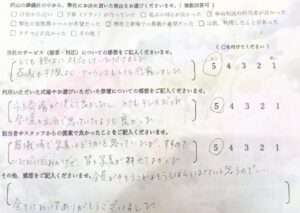 Q:当社のサービス(接客・対応)についての感想をご記入くださいませ。