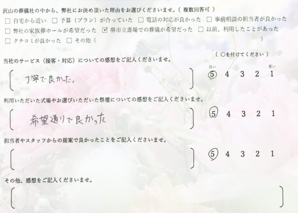 ☑堺市立斎場での葬儀が希望だった