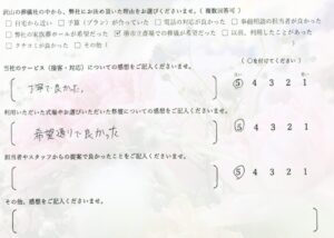 Q:当社のサービス(接客・対応)についての感想をご記入くださいませ。