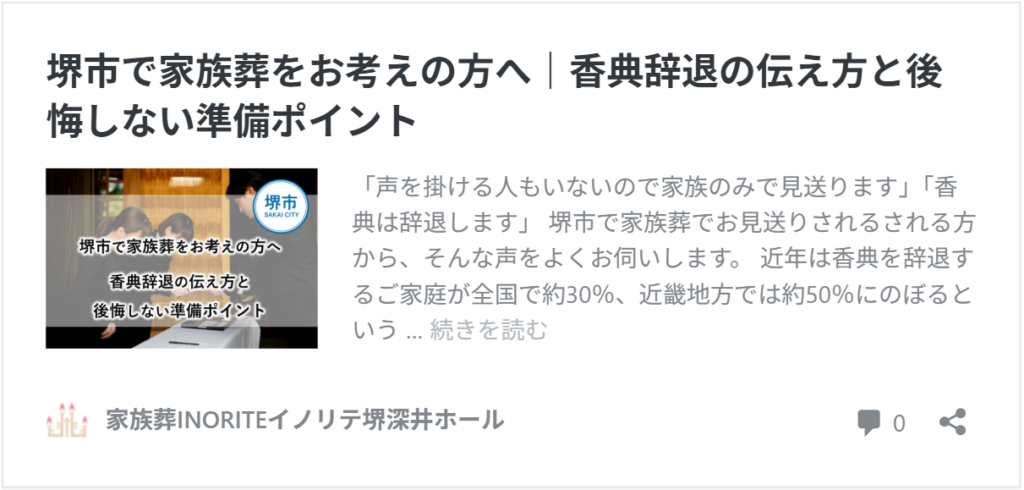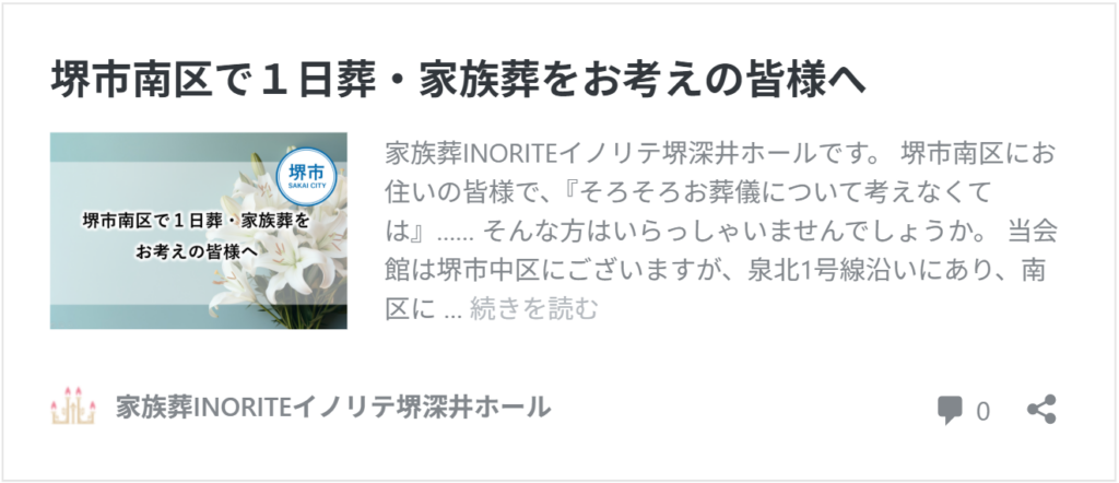 家族葬イノリテ堺深井ホール では、堺市を中心に地域の葬儀を承っており、事前相談も行っています。葬儀に関する様々なご相談から、実際の葬儀の準備、葬儀後のアフターサポートまで、経験豊富なスタッフが丁寧にお手伝いいたします。